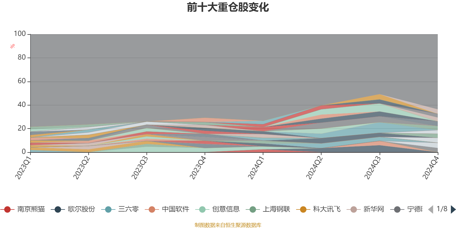 截至2024年四季度末,基金十大重仓股分别是长江电力、梅安森、中国平安、贵州茅台、宁德时代、尚太科技、湖南裕能、璞泰来、龙蟠科技、富临精工。